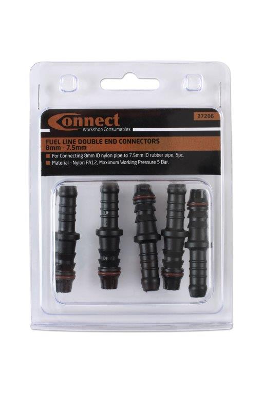 Złącze paliwowe obustronne LASER LSR 37206 to wysokiej jakości element przeznaczony do łączenia przewodów paliwowych o średnicach 8 mm i 7,5 mm. Opakowanie zawiera 5 sztuk, co pozwala na szybkie i skuteczne wykonanie napraw lub modernizacji układu paliwowego w różnych pojazdach.