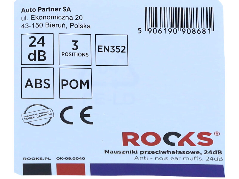 Nauszniki przeciwhałasowe ROOKS OK-09.0040, 24 dB – lekka i skuteczna ochrona słuchu