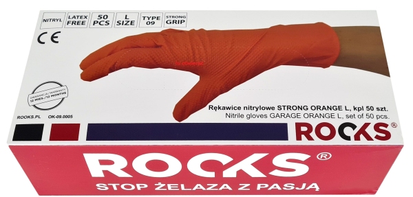 Rękawice nitrylowe STRONG ORANGE L, komplet 50 szt. – wytrzymałość i ochrona w intensywnych warunkach