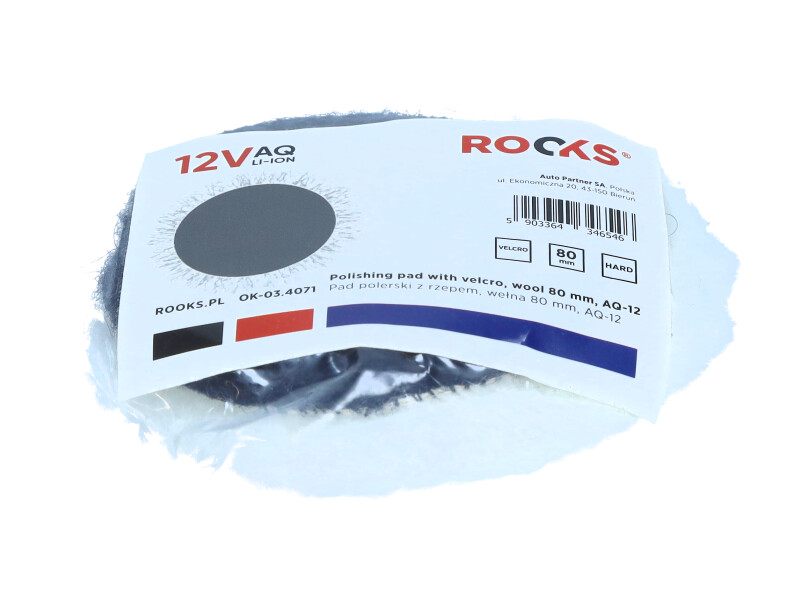 OK-03.4071 – 12 V pad polerski z rzepem, wełna ROOKS 75 mm