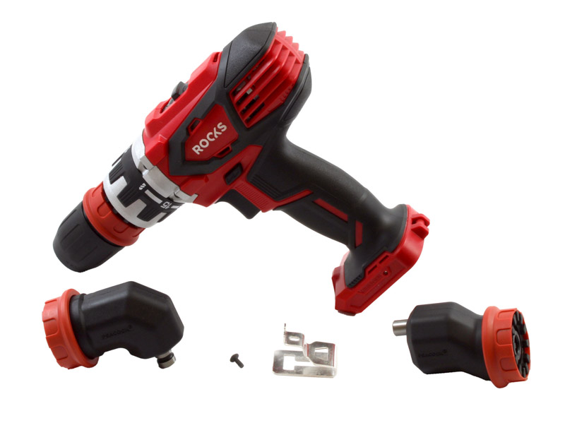 ROOKS OK-03.4031 – 18 V AQ-ONE wiertarko-wkrętarka z udarem, z wymiennymi kątowymi uchwytami, 58 Nm, bez baterii