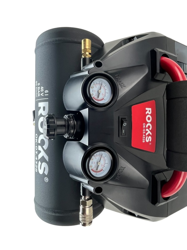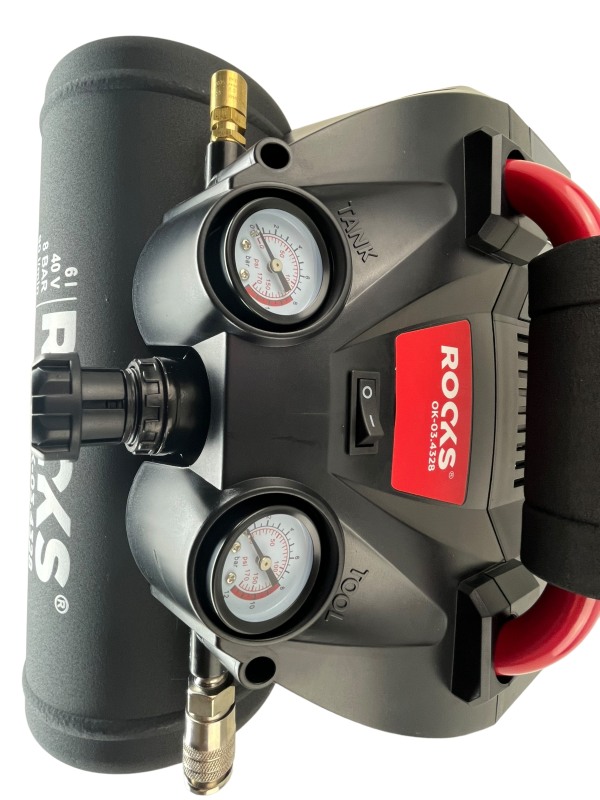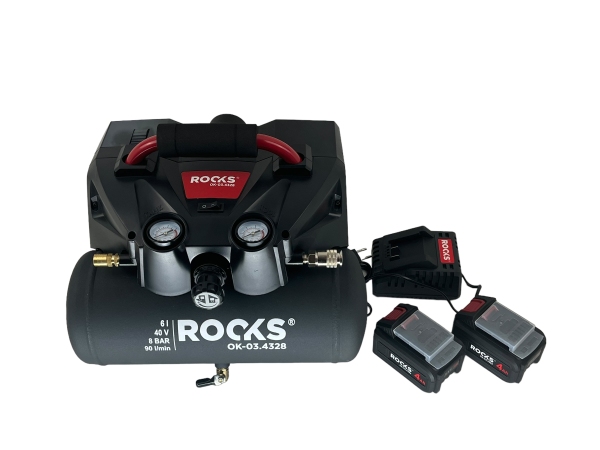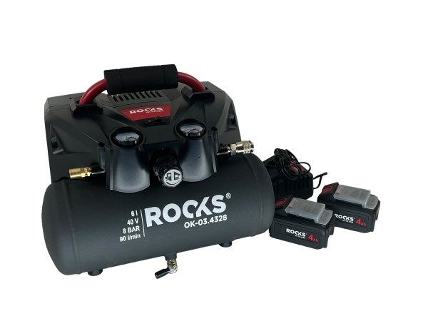 20V AQ-ONE Kompresor 6l, 1 KM, 8 bar, 40 V, zestaw 2x4Ah, ładowarka OK-03.4328 marki ROOKS to nowoczesny, bezszczotkowy kompresor paskowy, który zapewnia wysoką wydajność i niezawodność podczas pracy w warsztacie, garażu czy na budowie. Dzięki pojemności zbiornika 6 litrów, mocy 1 KM oraz maksymalnemu ciśnieniu 8 bar, urządzenie doskonale sprawdzi się przy zasilaniu narzędzi pneumatycznych, pompowaniu opon czy czyszczeniu sprężonym powietrzem. Zestaw zawiera dwa akumulatory 4 Ah oraz szybką ładowarkę, co gwarantuje długą i nieprzerwaną pracę bez konieczności podłączania do sieci.