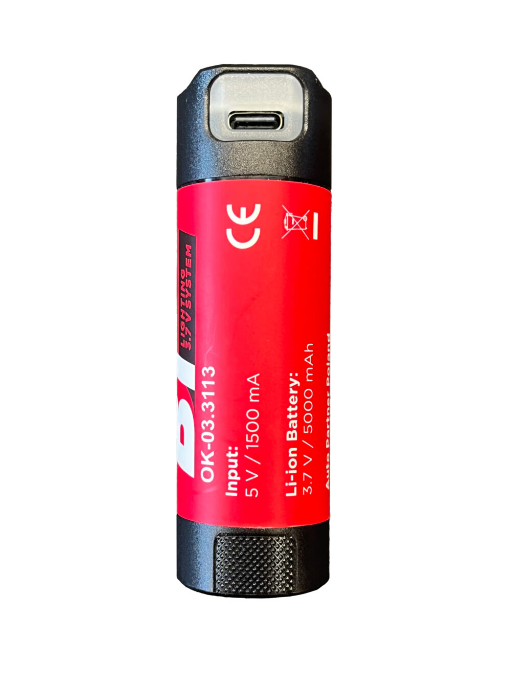 Baterię możesz ładować bezpośrednio z ładowarki z kablem USB-C lub poprzez specjalną ładowarkę do lamp systemu B1/B2, która ma odpowiednie gniazda do baterii 2600 / 3500 / 5000 mAh.