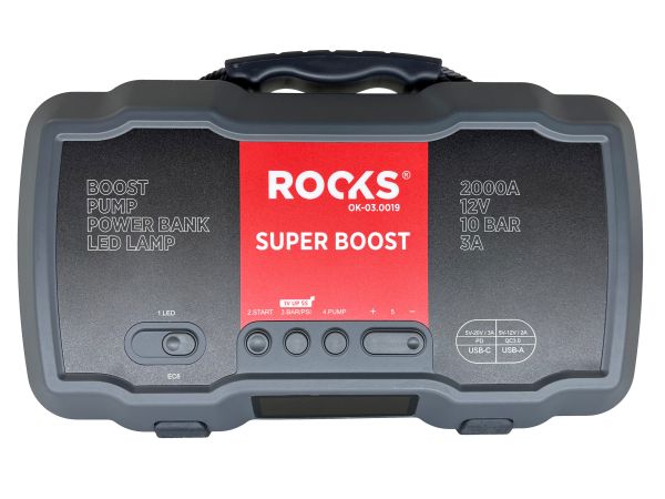 ROOKS OK-03.0019 to zaawansowane urządzenie rozruchowe typu booster z wbudowanym kompresorem, przeznaczone do awaryjnego uruchamiania pojazdów oraz pompowania opon i innych elementów wymagających sprężonego powietrza. Dzięki wysokiemu prądowi rozruchowemu (1000 A / 2000 A), pojemności 55,5 Wh oraz maksymalnemu ciśnieniu 10 BAR, urządzenie sprawdzi się zarówno w samochodach osobowych, jak i dostawczych, motocyklach czy łodziach.