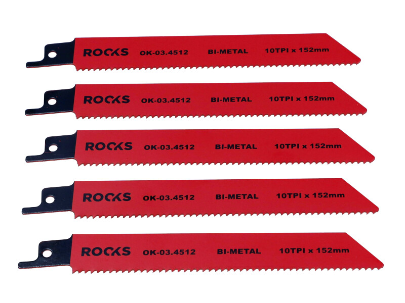 OK-03.4512 – Brzeszczot do piły szablastej ROOKS Bi-METAL, stal, 10 TPI x 152 mm, komplet 5 sztuk