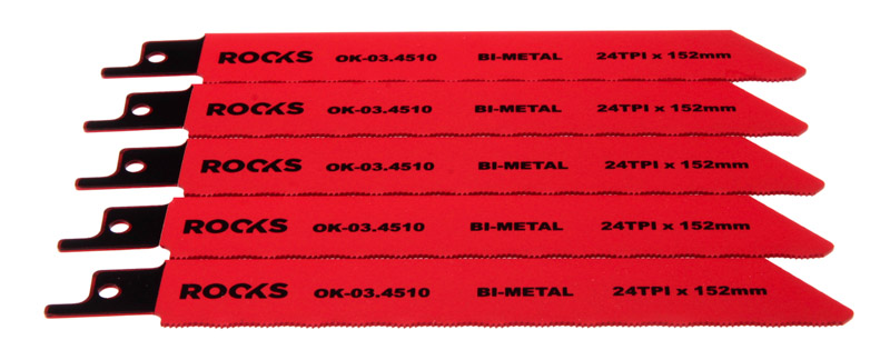 OK-03.4510 – Brzeszczot do piły szablastej ROOKS Bi-METAL, stal, 24 TPI x 152 mm, komplet 5 sztuk
