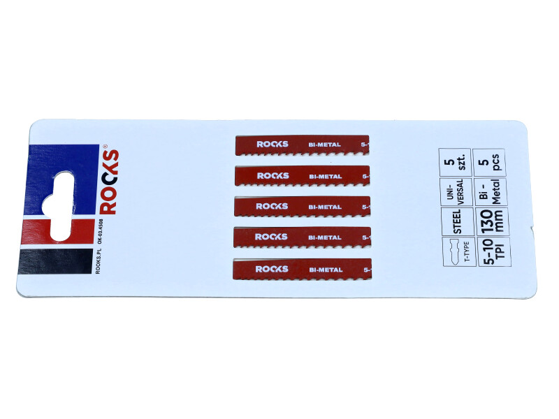 OK-03.4508 – Brzeszczot do wyrzynarki ROOKS Bi-METAL, TYP T, stal & uniwersalny, 5-10 TPI x 100 mm, komplet 5 sztuk