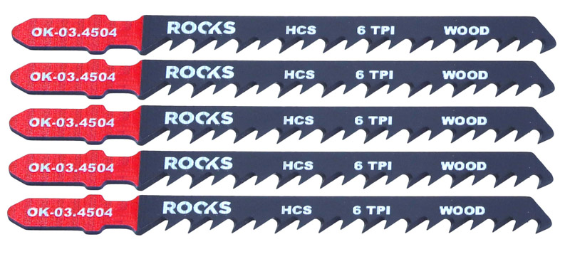 OK-03.4504 – Brzeszczot do wyrzynarki ROOKS HCS, TYP T, drewno, 6 TPI x 100 mm, komplet 5 sztuk