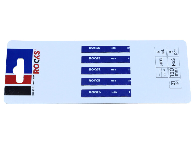 OK-03.4507 – Brzeszczot do wyrzynarki ROOKS HSS, TYP T, stal, 21 TPI x 130 mm, komplet 5 sztuk