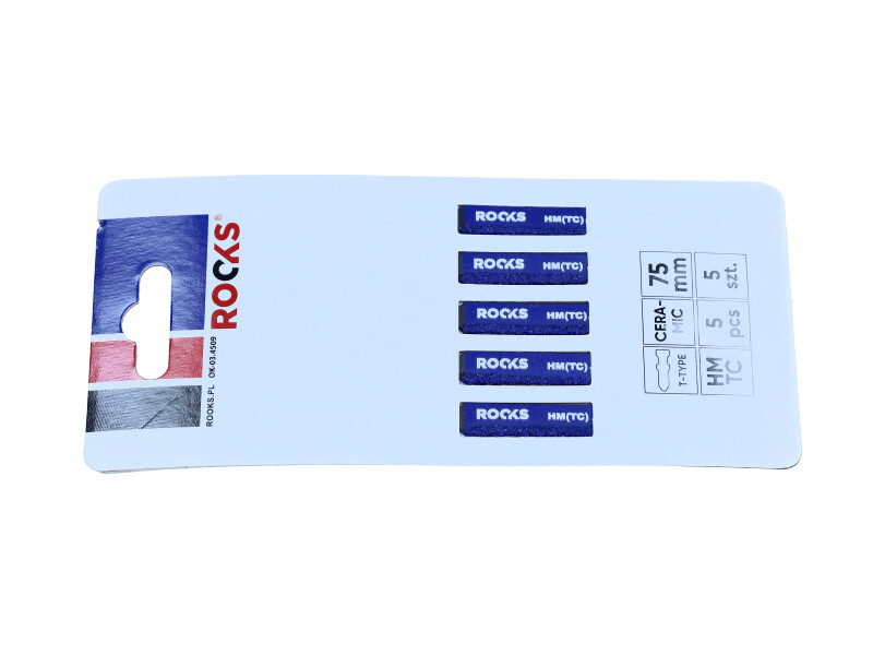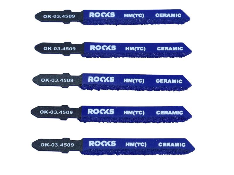 OK-03.4509 – Brzeszczot do wyrzynarki ROOKS, węglik spiekany HM(TC), TYP T, do ceramiki, 75 mm, komplet 5 sztuk