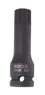 Klucz trzpieniowy udarowy ROOKS OK-01.5015 1/2″, 75 mm, SPLINE M18 – wytrzymałość CrMo SCM440, twardość 56 HRC, powierzchnia BLACK PHOSPHATED