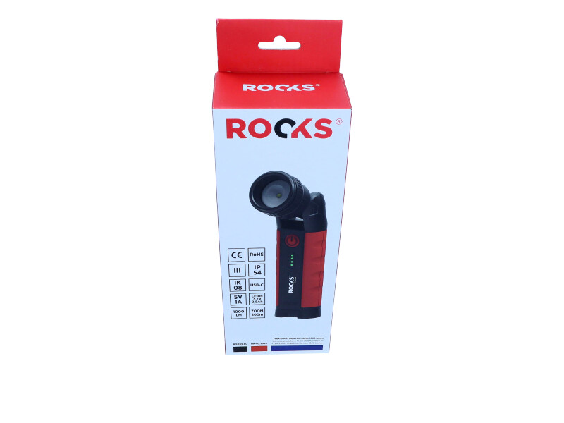 ROOKS OK-03.3024 – Lampa warsztatowa zoom kątowa, 1000 lm, 2500 mAh, FLEX