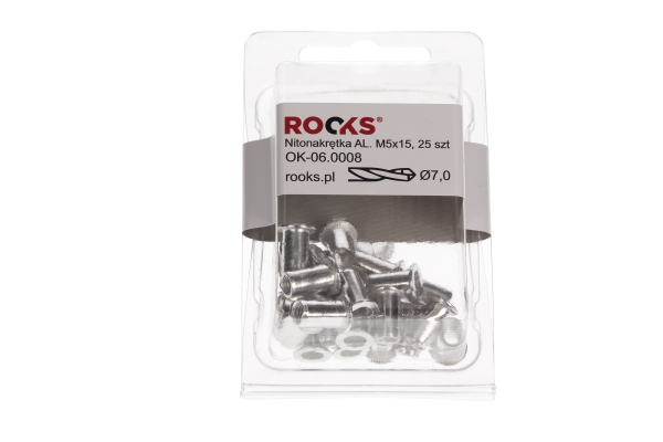 Nitonakrętka OK-06.0008 to wysokiej jakości aluminiowy element montażowy przeznaczony do szybkiego i trwałego łączenia elementów metalowych i tworzywowych. Opakowanie zawiera 25 sztuk nitonakrętek o wymiarach M5 x 15 mm, co pozwala na sprawne wykonanie wielu napraw i montaży w warsztacie lub podczas prac remontowych.