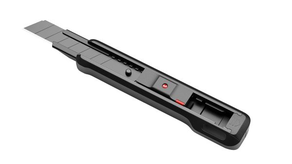 Nóż ROOKS HD 18 mm został zaprojektowany z myślą o wygodzie i bezpieczeństwie użytkownika. Ergonomiczny uchwyt minimalizuje zmęczenie dłoni, a blokada ostrza chroni przed przypadkowym wysunięciem się segmentu nawet przy dużym nacisku.