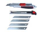 Nożyk z ostrzem łamanym, metalowy 18 mm ROOKS OK-06.0115 to niezawodne narzędzie do precyzyjnego cięcia papieru, kartonu, folii, skóry oraz innych materiałów. Wyposażony w 5 wymiennych ostrzy wykonanych z wysokogatunkowej stali SK5, zapewnia długotrwałą ostrość i odporność na zużycie nawet przy intensywnym użytkowaniu. Metalowa obudowa gwarantuje trwałość i bezpieczeństwo pracy.