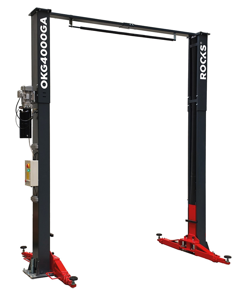 Podnośnik ROOKS OKG-4000GA to zaawansowany, automatyczny podnośnik dwukolumnowy stworzony do pracy w profesjonalnych warsztatach samochodowych. Konstrukcja łączona górą zapewnia wygodne wykonywanie zaawansowanych napraw osobowych i dostawczych o masie do 4000 kg, umożliwiając swobodny przejazd wózkami narzędziowymi.