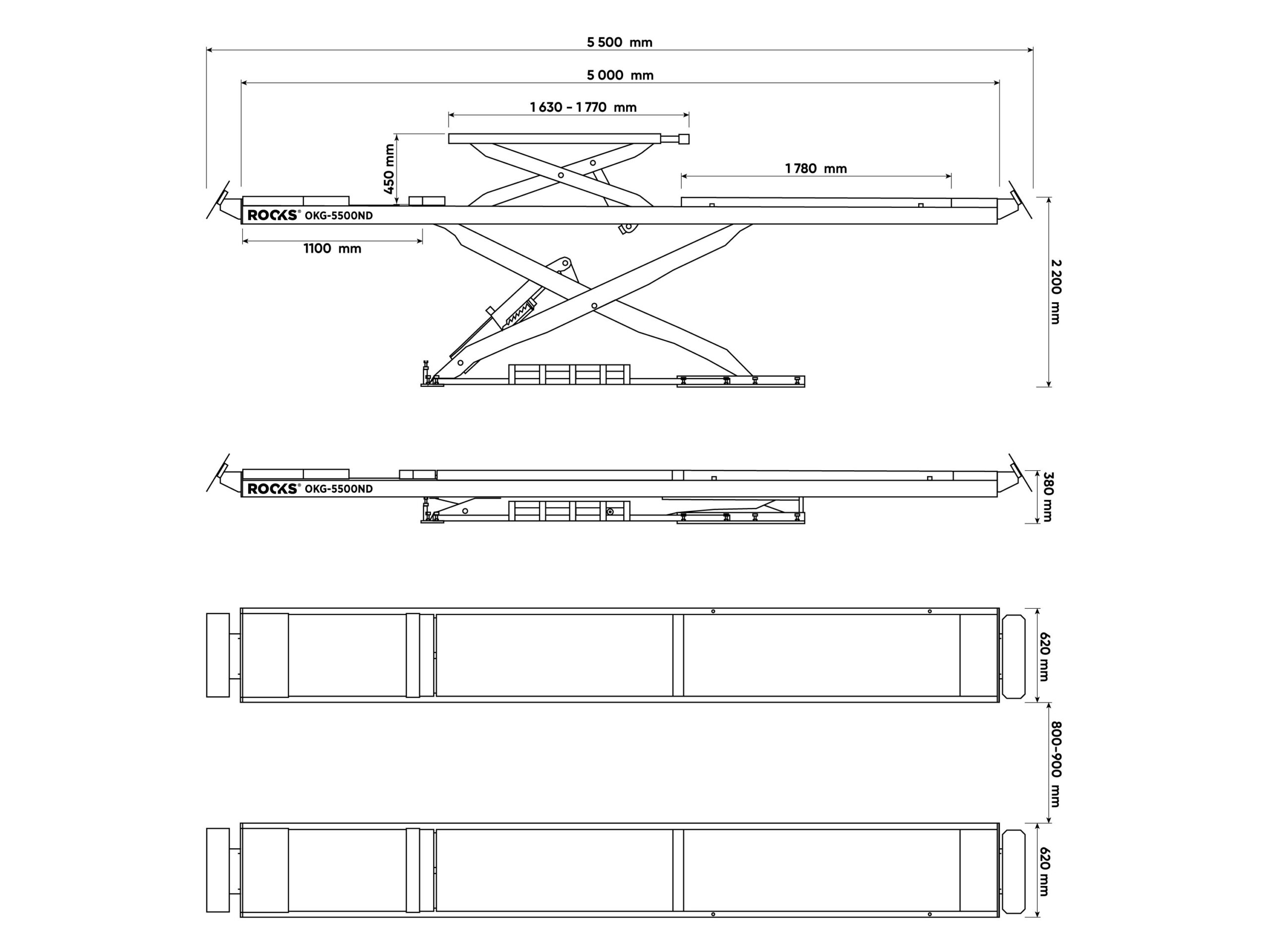 ROOKS OKG-5500ND – Podnośnik nożycowy diagnostyczny do geometrii z dodatkowymi nożycami podprogowymi i platformami 5,5t