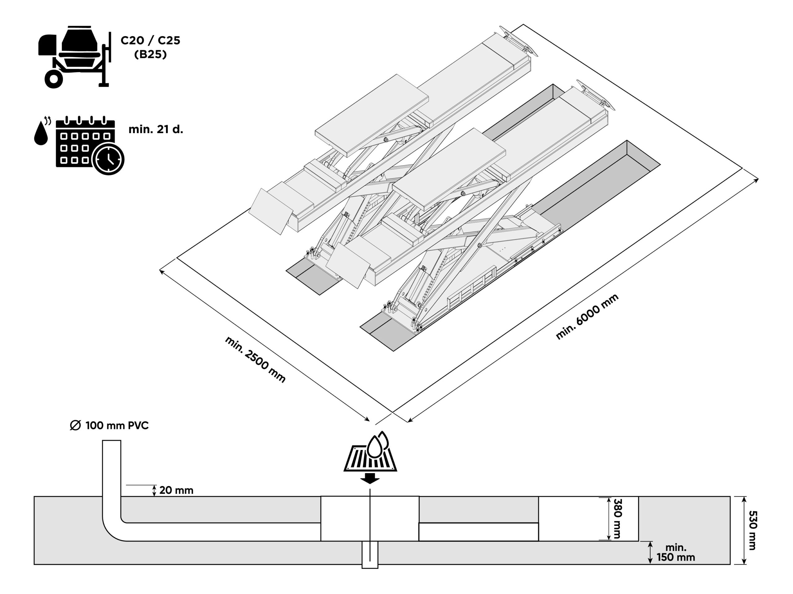 Model wyposażono dodatkowo w nożyce podprogowe, które pozwalają na podnoszenie osi lub całego pojazdu w trakcie prac serwisowych. Automatyczne blokady oraz sterowanie bezpiecznym napięciem 24V gwarantują komfort i bezpieczeństwo obsługi. Dzięki dużej nośności, możliwości pracy z geometrią oraz dodatkowym nożycom podprogowym jest to rozwiązanie wyjątkowo wszechstronne i kompletne.