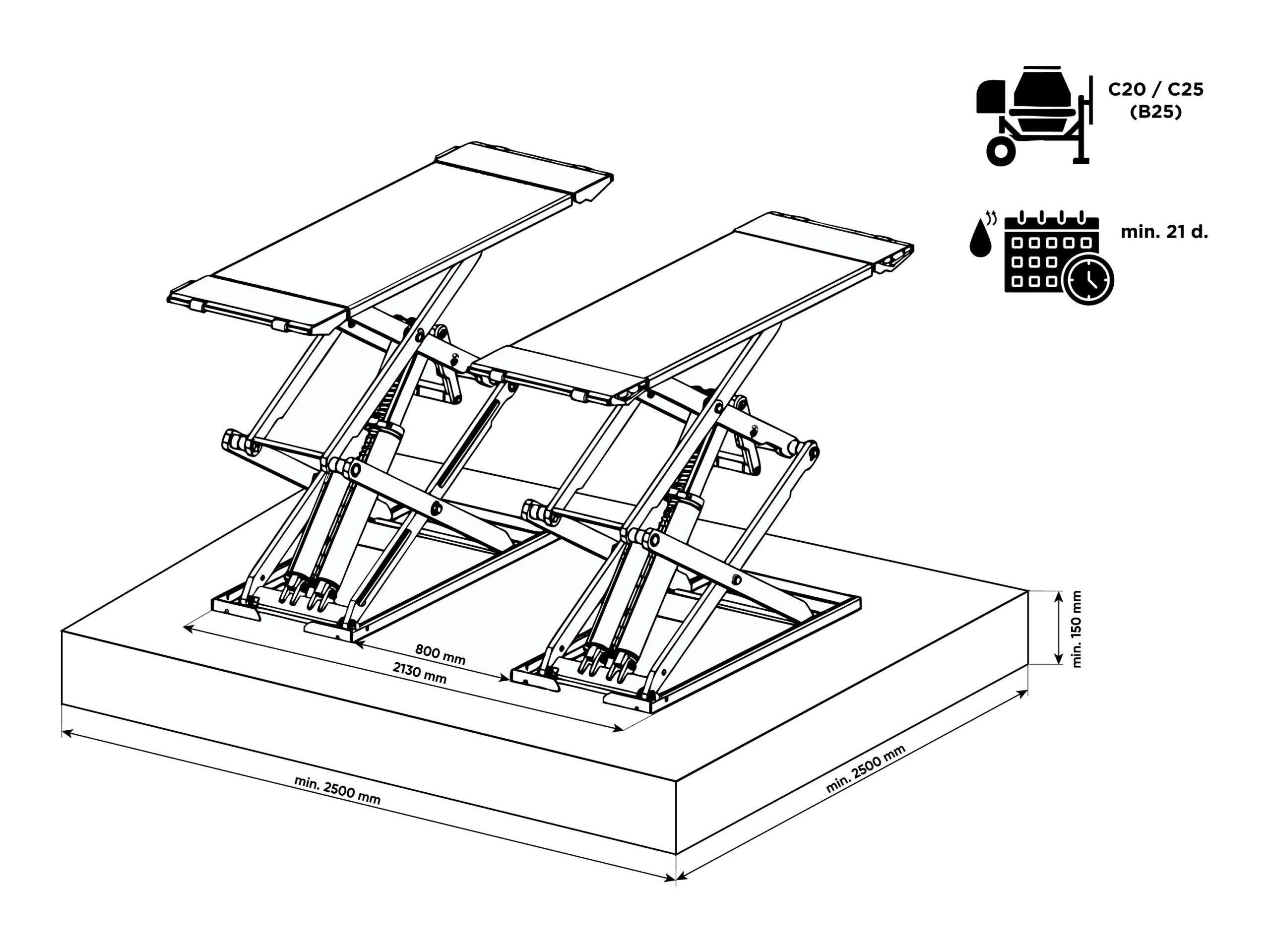 ROOKS OKG-3000NP – Podnośnik nożycowy podprogowy naposadzkowy 3 t
