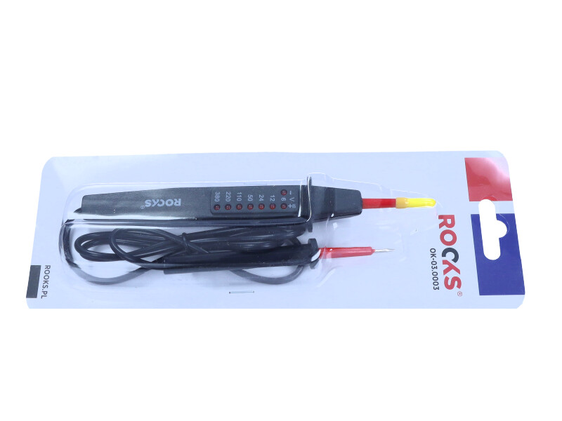 Próbówka ROOKS OK-03.0003 to uniwersalny miernik napięcia przeznaczony do szybkiego i bezpiecznego pomiaru napięcia w instalacjach elektrycznych samochodów oraz innych urządzeń. Dzięki szerokiemu zakresowi pomiarowemu (6–380V), urządzenie sprawdzi się zarówno w warsztatach, jak i podczas samodzielnych napraw i diagnostyki.