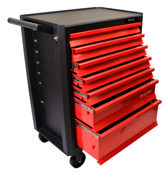 Szafka narzędziowa ROOKS OK-01.3000 ECO to propozycja dla osób, które szukają solidnego, a jednocześnie ekonomicznego rozwiązania do przechowywania narzędzi w warsztacie, garażu lub serwisie. Dzięki przemyślanemu układowi szuflad oraz kompaktowej konstrukcji, szafka umożliwia wygodną organizację i szybki dostęp do najważniejszych akcesoriów podczas codziennych prac.