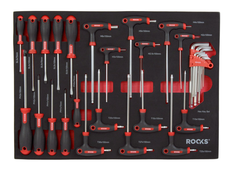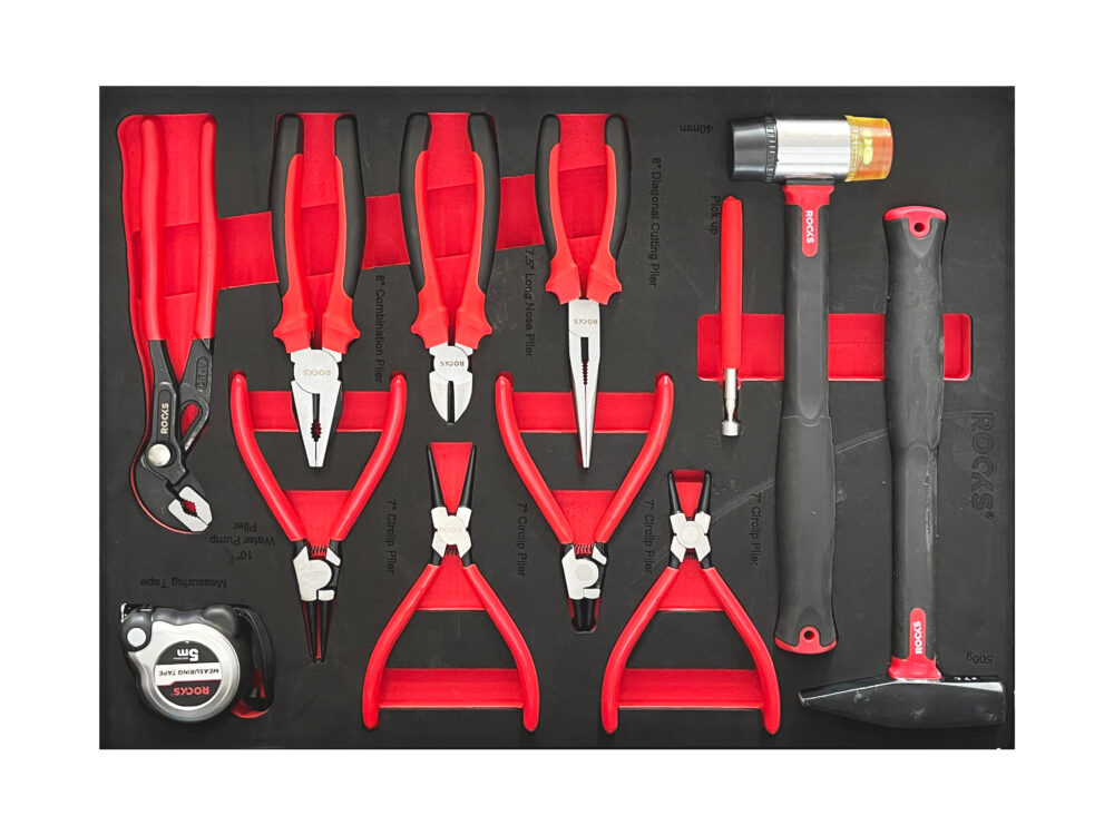 Kompletny zestaw na start: Zestaw 276 starannie wyselekcjonowanych narzędzi ROOKS, rozmieszczonych w 5 szufladach, pokrywa niemal każdą potrzebę warsztatową. Od kluczy nasadowych, przez wkrętaki, po szczypce – zapomnij o brakujących elementach i nieplanowanych wycieczkach do sklepu w połowie pracy.