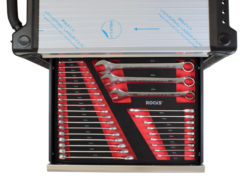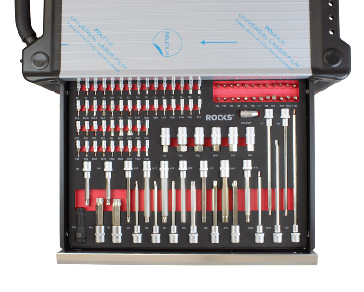 Porządek, który inspiruje: Narzędzia umieszczone są w precyzyjnie wyciętych wkładkach z pianki. Dzięki temu od razu widzisz, czy czegoś brakuje i utrzymujesz wzorowy ład. Wykonane z najwyższej jakości stali CrV 50BV30 i S2, gwarantują niezawodność i wytrzymałość nawet przy najcięższych zadaniach.