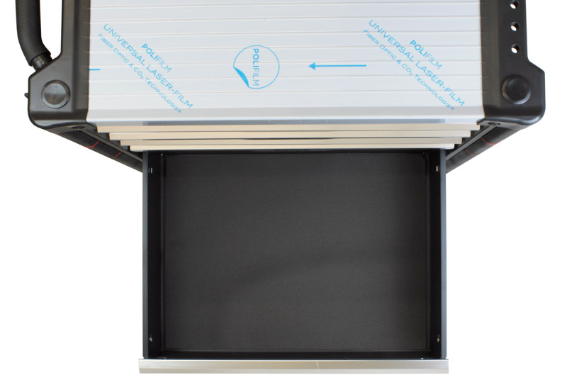 Prawdziwa mocna konstrukcja z podwójnymi ścianami: Daje jeszcze większe możliwości, na profilowanym, metalowym blacie możesz położyć silnik o macie nawet 450 kg i wykonywać jego naprawy. Boki szafki zabezpieczone są gumowymi odbojnikami, co gwarantuje bezpieczeństwo samochodów w serwisie a system SAFETY LOCK w szufladach zabezpiecza przed niekontrolowanym otwarciem szuflady. Możesz otworzyć tylko jedną szufladę i dzięki temu szafka jest stabilna.