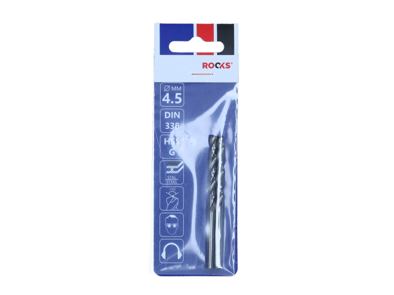 Wiertło do metalu PRO ROOKS OK-03.4611 ∅ 4,5 mm, HSS G 900 N/mm², DIN 338 – precyzja i trwałość w zestawie 2 sztuki