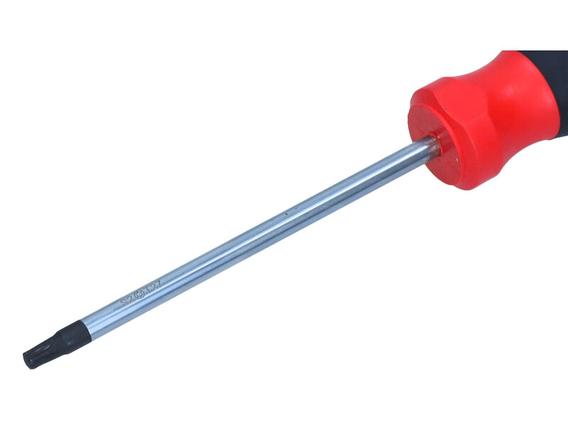 Wkrętak TORX SECURITY ROOKS OK-07.2135 o rozmiarze TS27 x 100 mm to narzędzie stworzone do pracy z zabezpieczonymi śrubami typu Torx Security. Wysokogatunkowa stal oraz solidna, wzmocniona konstrukcja zapewniają odporność na uderzenia, odkształcenia i intensywne obciążenia. Precyzyjnie wyprofilowana końcówka gwarantuje idealne dopasowanie do śrub, a ergonomiczna rękojeść zapewnia komfort i bezpieczeństwo użytkowania nawet podczas długotrwałej pracy.