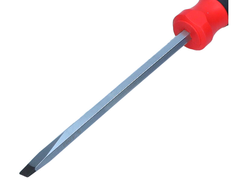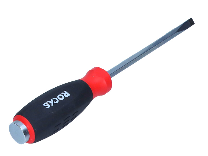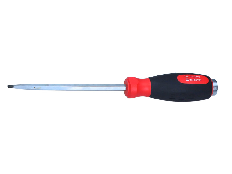 Wkrętak udarowy ROOKS OK-07.2212 o rozmiarze SL8 x 150 mm to narzędzie dla profesjonalistów, którzy oczekują maksymalnej trwałości i skuteczności. Wykonany z wysokogatunkowej stali S2 o twardości 52 HRC, gwarantuje odporność na uderzenia, odkształcenia i intensywne obciążenia. Ergonomiczna rękojeść zapewnia pewny chwyt, a precyzyjna końcówka umożliwia idealne dopasowanie do śrub.