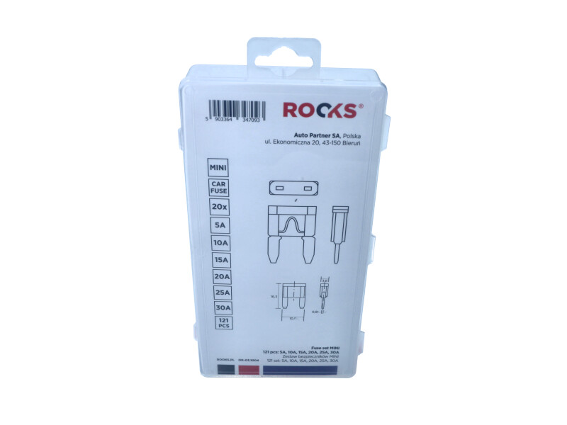 Zestaw bezpieczników samochodowych ROOKS OK-03.1004 – MINI, 121 szt.