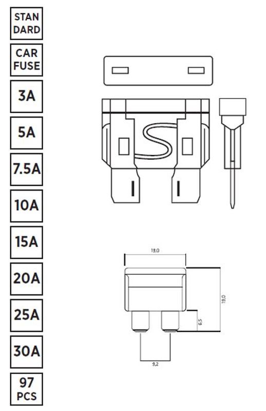 Zestaw bezpieczników samochodowych ROOKS OK-03.1005 – STANDARD (ATO), 97 szt.