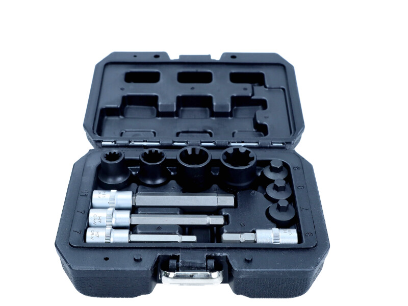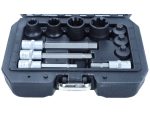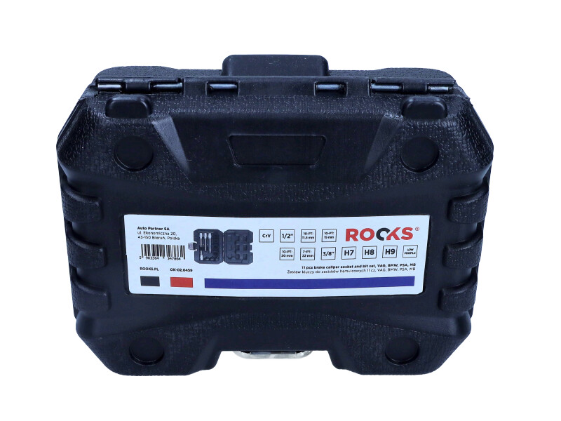 Zestaw kluczy OK-02.0459 marki ROOKS to kompletny zestaw narzędzi przeznaczony do demontażu i montażu połączeń śrubowych w zaciskach hamulcowych samochodów Audi A5, S5 oraz innych pojazdów z grup VAG, BMW, PSA i Mercedes-Benz. W skład zestawu wchodzą nasadki udarowe ½” o specjalnym profilu 10-kątnym (rozmiary: 11,5 / 15 / 20 / 22 mm), klucze trzpieniowe 3/8” HEX (H7x65 / H7x95 / H9x50 / H11x100 mm) oraz bity udarowe 3/8” z niskim profilem HEX (7 / 8 / 9 mm). Zestaw liczy łącznie 11 elementów, które umożliwiają sprawną i bezpieczną obsługę zacisków hamulcowych w szerokiej gamie pojazdów.