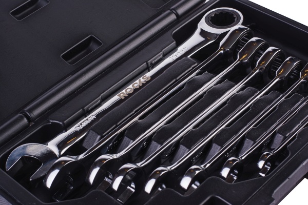 Zestaw kluczy płasko-oczkowych z grzechotką ROOKS OK-01.6000, 8 sztuk, 8–19 mm