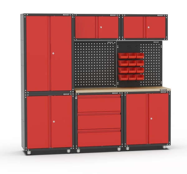 Zestaw mebli warsztatowych ROOKS został zaprojektowany z myślą o wygodzie i bezpieczeństwie użytkownika. Solidna konstrukcja, zamykane drzwi oraz przemyślany układ elementów gwarantują porządek, szybki dostęp do narzędzi i ochronę wyposażenia.