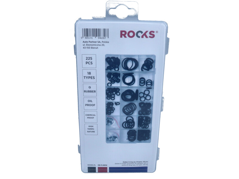 Zestaw O-ringów gumowych, 18 rodzajów, 225 szt. ROOKS OK-11.0012 – uniwersalna szczelność i wygoda w jednym opakowaniu