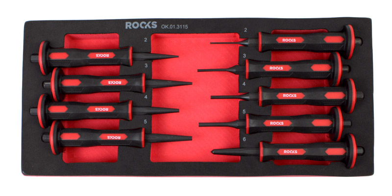 ROOKS OK-01.3115 to kompletny zestaw przecinaków i punktaków składający się z 9 wysokiej jakości narzędzi, niezbędnych w każdym warsztacie mechanicznym, blacharskim i serwisie samochodowym. Narzędzia pozwalają na precyzyjne punktowanie, przecinanie oraz znakowanie metalu i innych materiałów, gwarantując dokładność i bezpieczeństwo pracy.