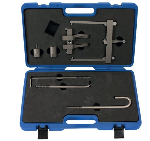 • Zestaw zawiera: ściągacz do kół pasowych, ściągacz do przegubów, 3 ściągacze punktowe (L, J, I) do wyciągania elementów podwozia, silnika oraz karoserii