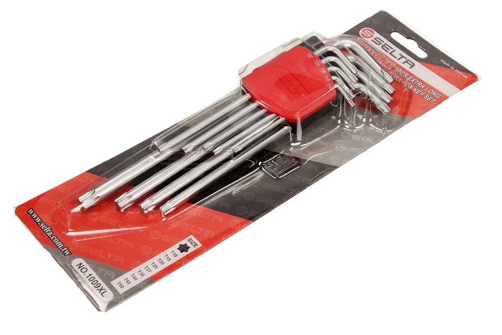 Zestaw kluczy imbusowych SELTA SE-1009XL, extra długie TORX, T10–T50, 9 sztuk w uchwycie