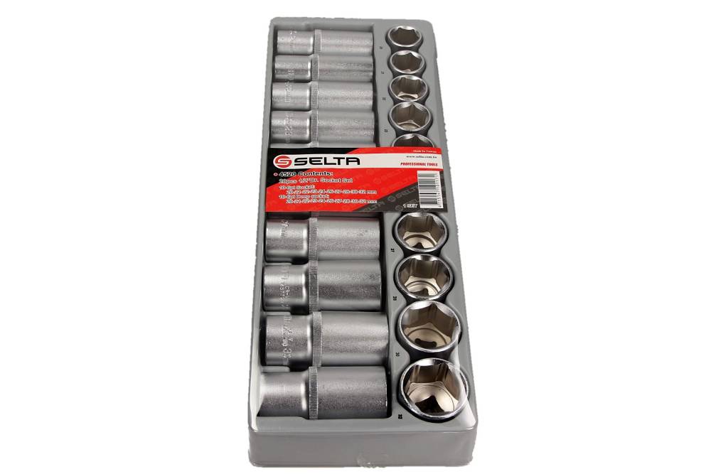 SELTA SE-4520 to kompletny zestaw nasadek 1/2″, składający się z 20 elementów, zaprojektowany z myślą o profesjonalnym i amatorskim użyciu w warsztacie oraz przy pracach serwisowych. Modułowy układ 1/3 umożliwia łatwe przechowywanie i szybki dostęp do potrzebnych nasadek.