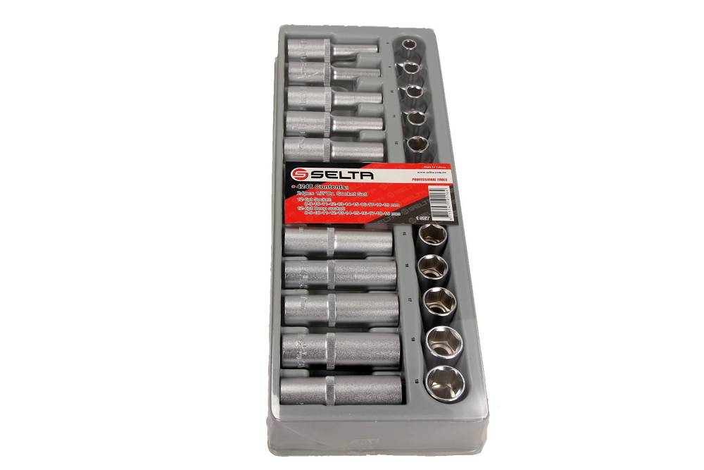 SELTA SE-4248 to kompletny zestaw 24 nasadek 1/2″, przeznaczony do profesjonalnych warsztatów, serwisów mechanicznych oraz majsterkowiczów. Moduł 1/3 zapewnia wygodne przechowywanie, szybki dostęp do narzędzi i utrzymanie porządku w skrzynce narzędziowej.