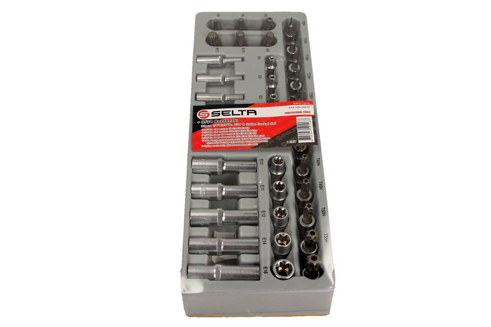 SELTA SE-3538 – Zestaw nasadek TORX i SPLINE 3/8″, 38 elementów, moduł 1/3