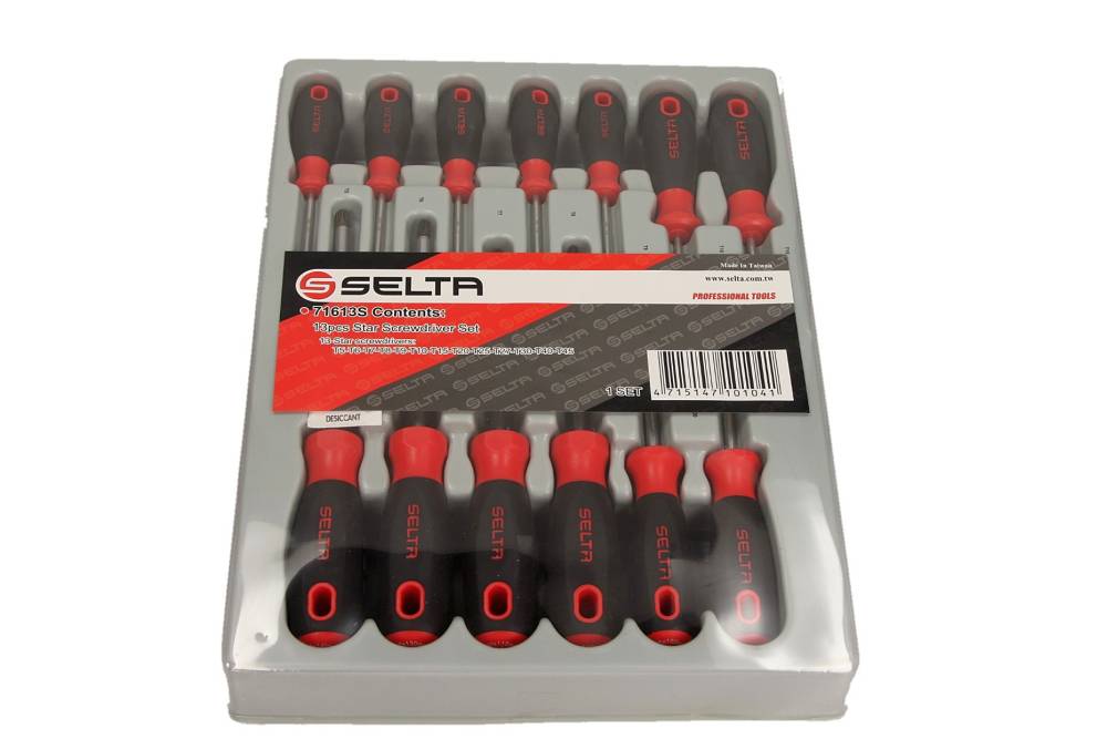 Zestaw SELTA SE-71613S został zaprojektowany z myślą o bezpiecznej i precyzyjnej pracy. Ergonomiczne rękojeści zapewniają pewny chwyt, a wysokiej jakości groty zmniejszają ryzyko ześlizgnięcia się wkrętaka, chroniąc użytkownika i elementy obrabiane.