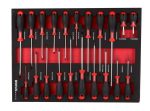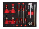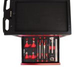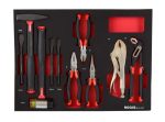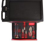 Solidna, metalowa konstrukcja szafki zapewnia trwałość i odporność na uszkodzenia nawet przy intensywnym użytkowaniu. Przemyślany układ szuflad oraz ergonomiczne uchwyty gwarantują komfort pracy i łatwość organizacji narzędzi. Zestaw obejmuje szeroki wybór kluczy, nasadek, wkrętaków, szczypiec oraz innych akcesoriów, które sprawdzą się zarówno w profesjonalnych, jak i domowych zastosowaniach.