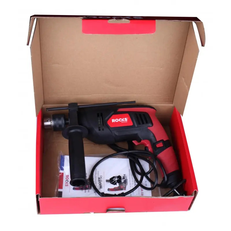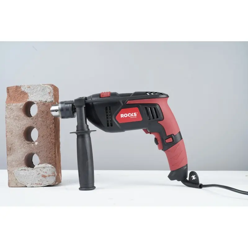 Wiertarka ROOKS została wyposażona w solidny silnik szczotkowy, który gwarantuje długą żywotność i niezawodność. Ergonomiczna konstrukcja oraz wygodny uchwyt zapewniają komfort pracy nawet podczas długotrwałego użytkowania. Funkcja udaru umożliwia skuteczne wiercenie w twardych materiałach, takich jak beton czy cegła.