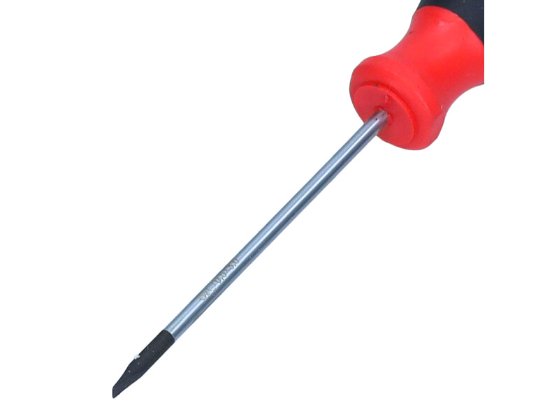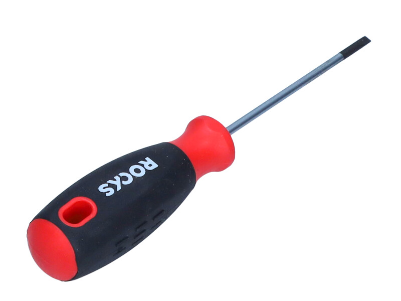 Wkrętak płaski ROOKS OK-07.2115 o rozmiarze SL3 x 100 mm to narzędzie stworzone do pracy z drobnymi śrubami z nacięciem prostym. Wysokogatunkowa stal S2 o twardości 52 HRC oraz solidna, wzmocniona konstrukcja zapewniają odporność na uderzenia, odkształcenia i intensywne obciążenia. Precyzyjnie wyprofilowana końcówka gwarantuje idealne dopasowanie do śrub, a ergonomiczna rękojeść zapewnia komfort i bezpieczeństwo użytkowania nawet podczas długotrwałej pracy.