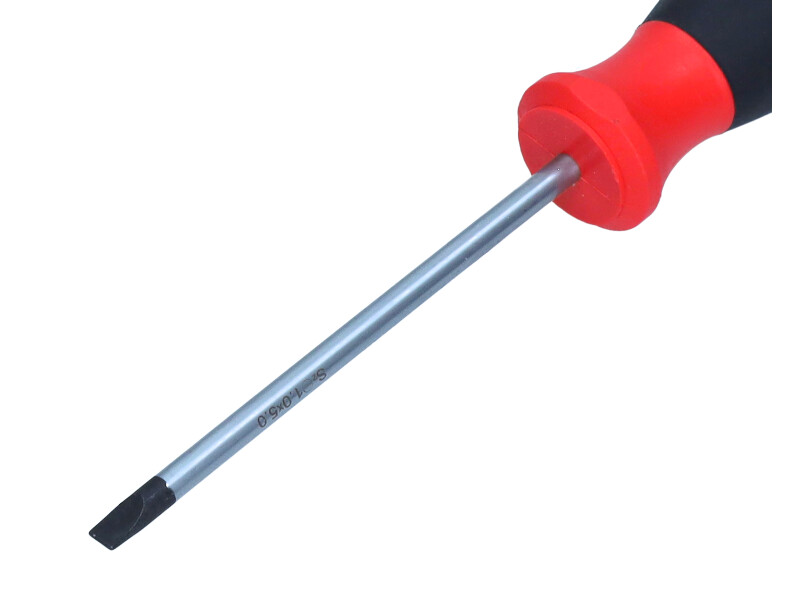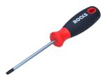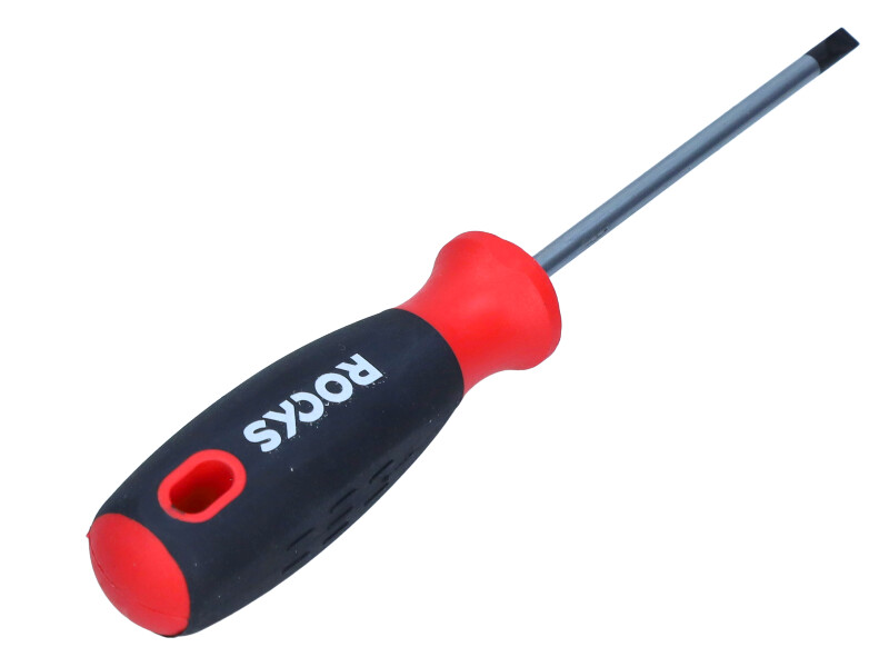 Wkrętak płaski ROOKS OK-07.2117 o rozmiarze SL5 x 100 mm to narzędzie stworzone do pracy z małymi śrubami z nacięciem prostym. Wysokogatunkowa stal S2 o twardości 52 HRC oraz solidna, wzmocniona konstrukcja zapewniają odporność na uderzenia, odkształcenia i intensywne obciążenia. Precyzyjnie wyprofilowana końcówka gwarantuje idealne dopasowanie do śrub, a ergonomiczna rękojeść zapewnia komfort i bezpieczeństwo użytkowania nawet podczas długotrwałej pracy.