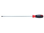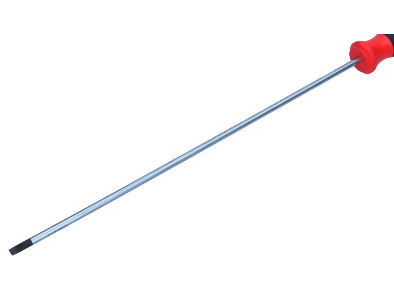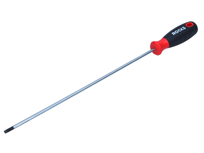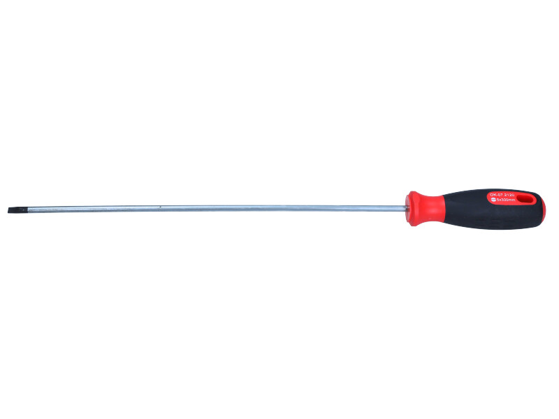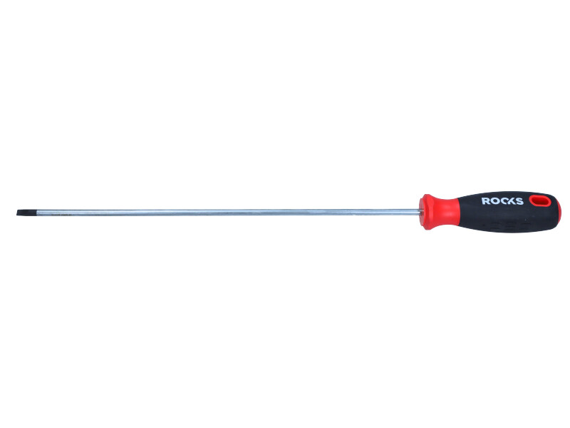 Wkrętak płaski ROOKS OK-07.2120 o rozmiarze SL5 x 300 mm to narzędzie stworzone do pracy z długimi śrubami z nacięciem prostym, szczególnie w trudno dostępnych miejscach. Wysokogatunkowa stal S2 o twardości 52 HRC oraz solidna, wzmocniona konstrukcja zapewniają odporność na uderzenia, odkształcenia i intensywne obciążenia. Precyzyjnie wyprofilowana końcówka gwarantuje idealne dopasowanie do śrub, a ergonomiczna rękojeść zapewnia komfort i bezpieczeństwo użytkowania nawet podczas długotrwałej pracy.