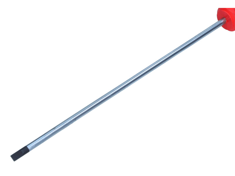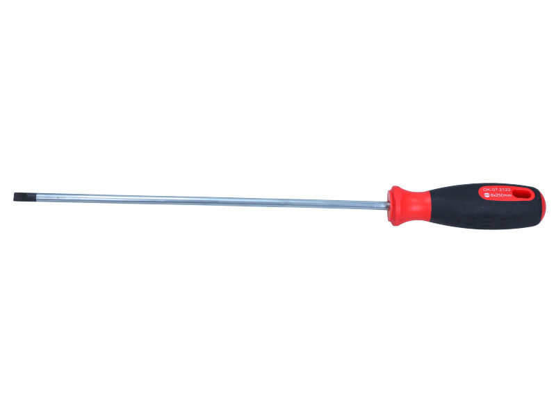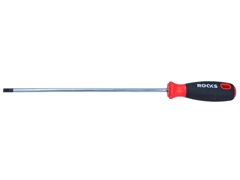 Wkrętak płaski ROOKS OK-07.2122 o rozmiarze SL6 x 250 mm to narzędzie stworzone do pracy z długimi śrubami z nacięciem prostym, szczególnie w trudno dostępnych miejscach. Wysokogatunkowa stal S2 o twardości 52 HRC oraz solidna, wzmocniona konstrukcja zapewniają odporność na uderzenia, odkształcenia i intensywne obciążenia. Precyzyjnie wyprofilowana końcówka gwarantuje idealne dopasowanie do śrub, a ergonomiczna rękojeść zapewnia komfort i bezpieczeństwo użytkowania nawet podczas długotrwałej pracy.